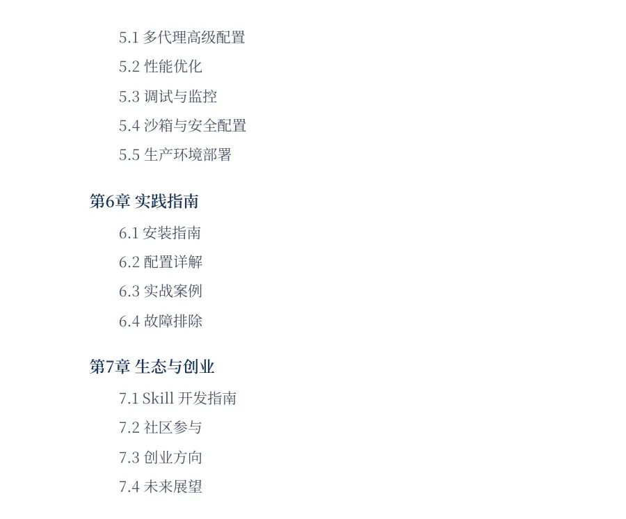 这份《OpenClaw完全指南》308页系统性地构建了从理论到实践的完整知识体系,将前沿的AI Agent技术转化为可理解、可操作的专业资源。它首次对OpenClaw这一开源自托管个人AI助手网关进行了全景式深度解析,填补了该领域系统性技术文献的空白。指南不仅详细阐述了OpenClaw的核心架构、工作原理与核心功能,更通过清晰的演进脉络梳理,将AI Agent技术置于从符号Agent、统计Agent到现代LLM-based Agent的历史发展框架中,帮助读者建立深刻的技术认知。其核心价值在于将复杂的技术概念转化为工程化的实现指南,降低了高级AI Agent技术的应用门槛。通过深入剖析多通道通信网关、持久化记忆系统、工具执行、多代理协作等核心模块,指南为开发者、研究者和技术爱好者提供了从原理理解到环境部署、从功能配置到技能开发的完整路径。特别是与自动驾驶系统的技术同源性类比,为具备相关背景的从业者提供了独特而直观的理解桥梁,促进了跨领域的技术迁移与创新。此外,指南对开源生态与创业方向的展望,超越了单纯的技术文档范畴,为构建围绕OpenClaw的开发者社区和商业生态提供了思想基础。它通过详尽的技能开发指南和社区参与指引,鼓励贡献与协作,有望加速开源项目的迭代与功能扩展,形成可持续的技术飞轮效应。最终,这份指南不仅服务于个体学习与项目实践,更可能推动个人AI助手向本地化、私有化、定制化方向演进,在数据隐私日益重要的时代,为构建用户完全掌控的下一代人机交互基础设施提供了重要的知识基石与实现蓝图。
