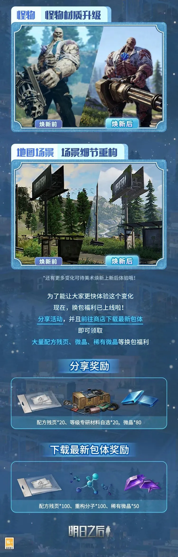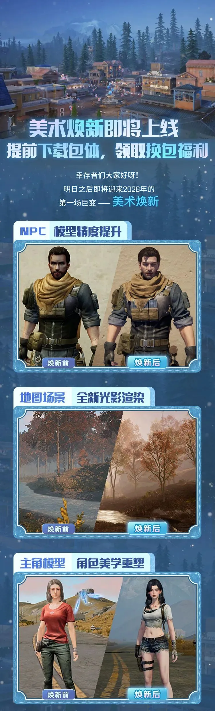 美术焕新即将上线,提前下载包体领换包福利!幸存者们