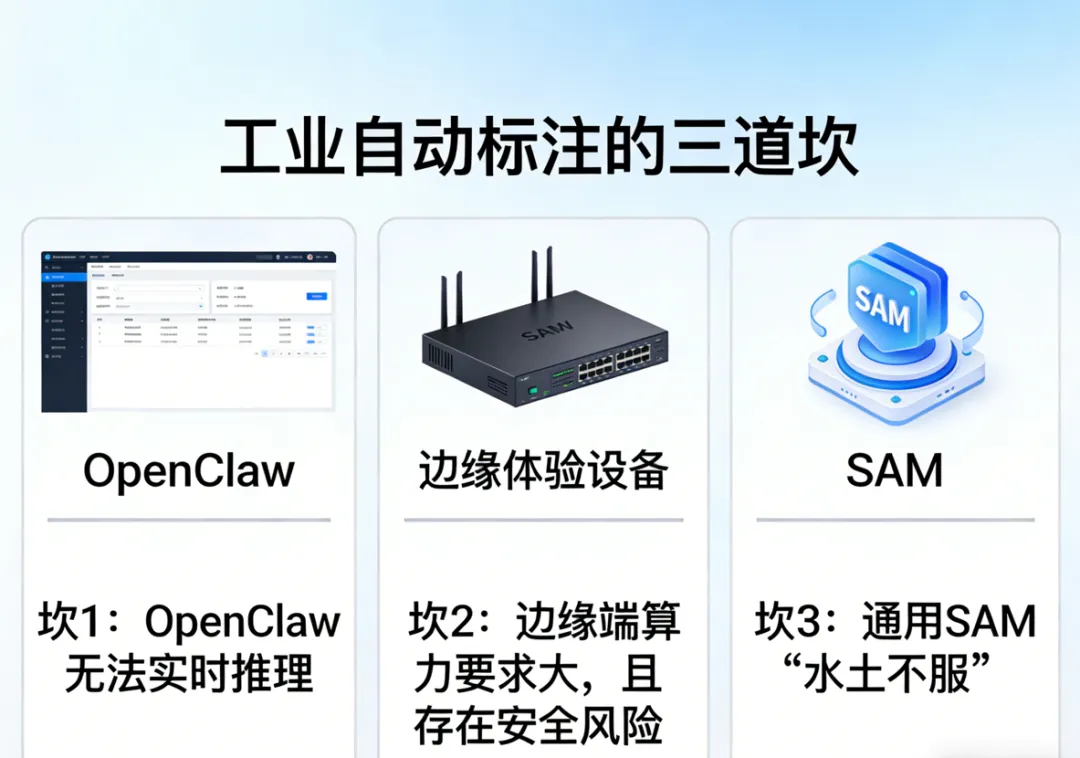 OpenClaw从接收指令到调用模型返回结果,5秒以上是常态。产线上的产品不可能等5秒,但标注任务可以——把数千张图丢给AI,让它半夜慢慢跑,员工早上来验收结果,不香吗?