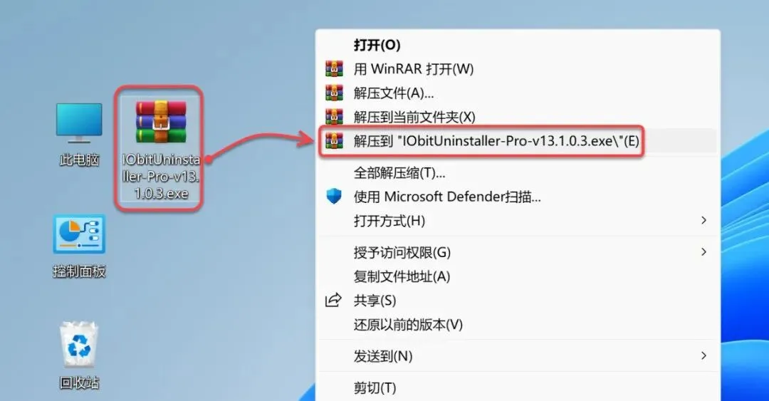 1.鼠标右击【IObitUninstaller-Pro-v13.1.0.3】压缩包(win11及以上系统需先点击“显示更多选项”)【解压到 IObitUninstaller-Pro-v13.1.0.3】。