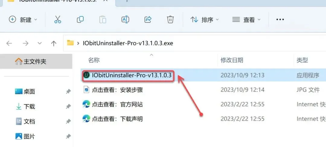 2.打开解压后的文件夹,双击【IObitUninstaller-Pro-v13.1.0.3】启动软件。