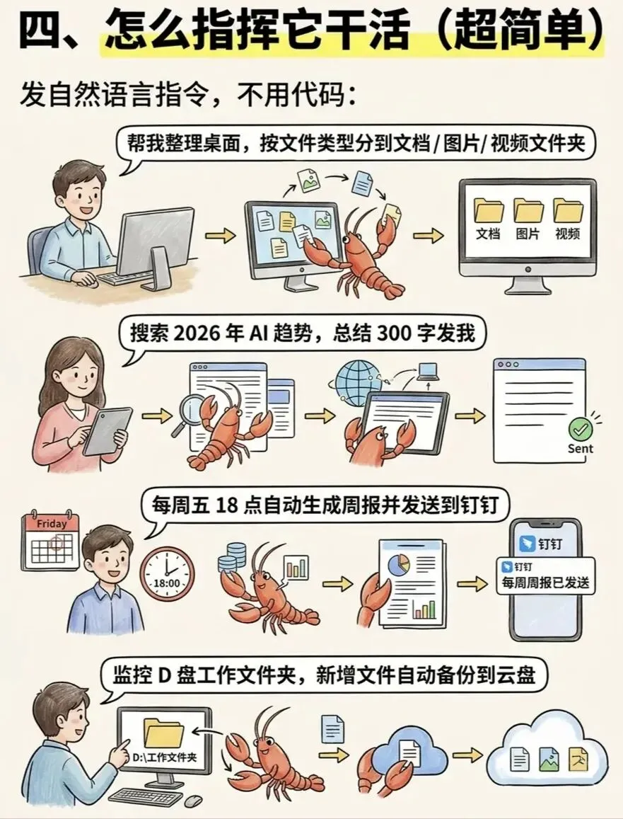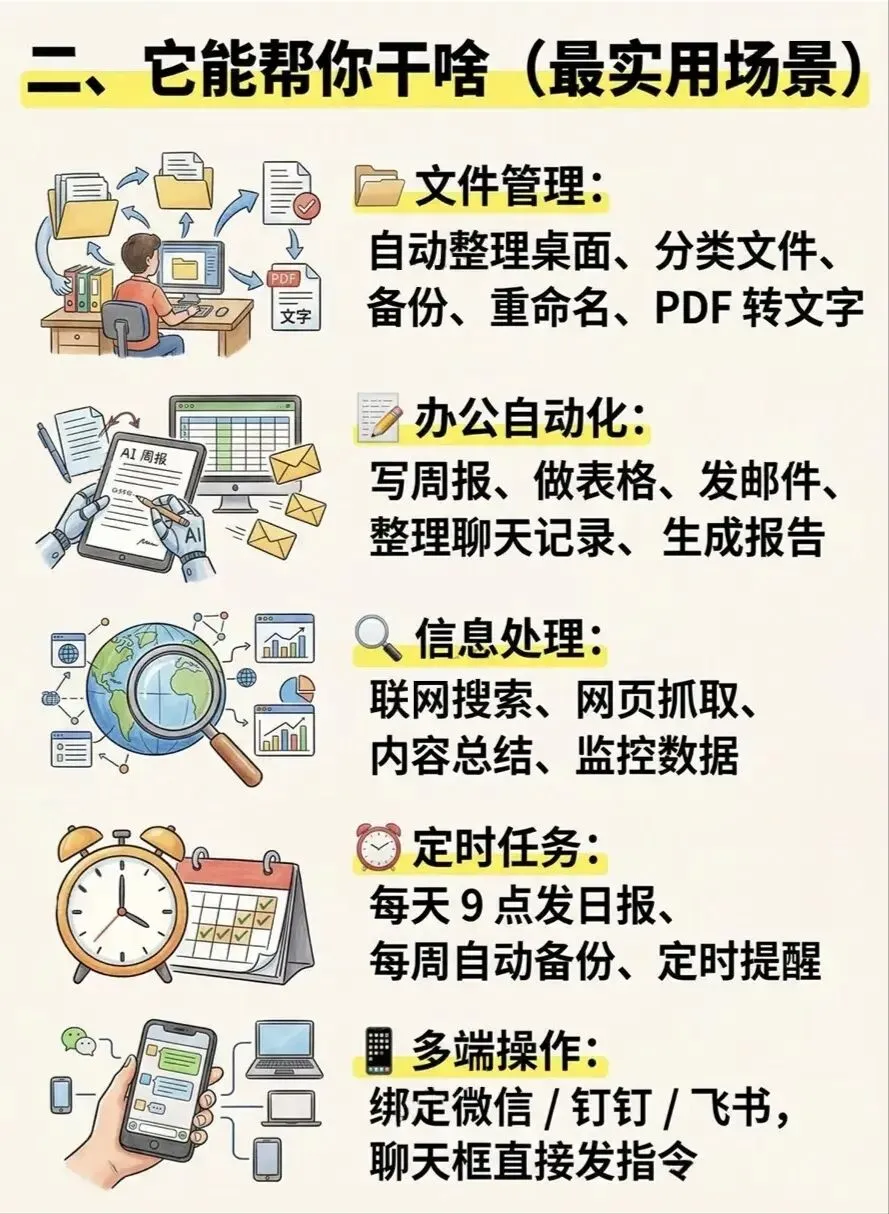 总结:OpenClaw是一款“能动手”的AI工具,适合希望通过自然语言指令解放重复劳动、提升效率的用户。无论是工作、学习还是生活,它都能成为24小时待命的“数字助理”。