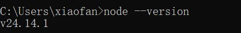 安装好之后,在 cmd 中运行node --version验证一下,能够输出版本号,证明安装成功(注意:需要重新打开一个 cmd)