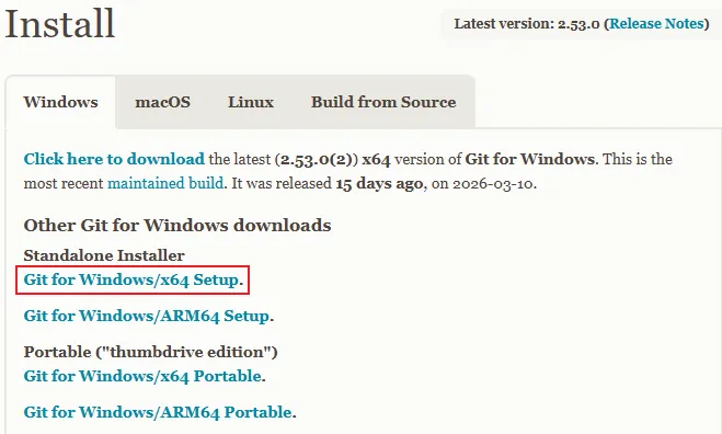 Node.js 安装好后,按理说可以安装 OpenClaw 了,但是在这之前,还需要安装一下 Git,因为 OpenClaw 安装的过程中,有一些依赖的安装需要用到 Git。