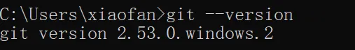 安装好之后,在 cmd 中运行git --version验证一下,能够输出版本号,证明安装成功(注意:需要重新打开一个 cmd)
