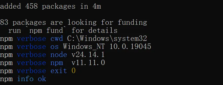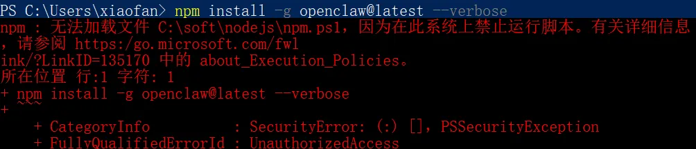 npm config set registry https://registry.npmmirror.com/官网文档给出的安装命令是npm install -g openclaw@latest,这个在安装过程中控制台是没有日志输出的,本来这个安装耗时就比较长,这个过程中再没有内容输出,我们心里会很没有底。可以在后边加上--verbose,像这样:npm install -g openclaw@latest --verbose