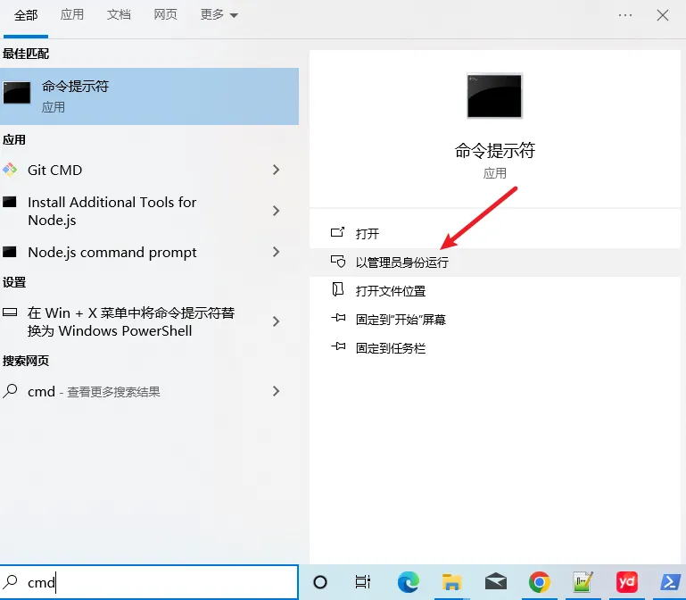 我这里就用 cmd 了,我用管理员权限打开它。