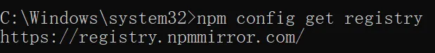 先用npm config get registry查看当前镜像源,默认是官方的地址