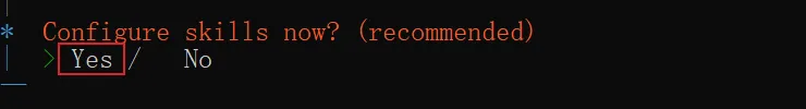 skills 这里可以选择 Yes,表示现在开始配置技能