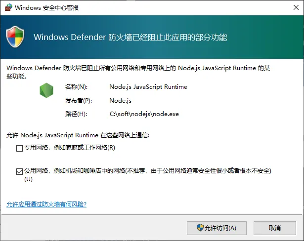 这个时候如果弹出防火墙的安全警报,我们点允许访问。