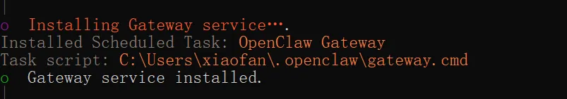 这里我们看到 Gateway 被安装成了后台服务,在 Windows 中是通过 schtasks 实现的,也就是 Scheduled Task,安装成后台服务的好处是可以实现类似开机自启。