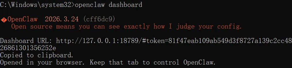这个 Web 页面如果关闭了,可以使用命令openclaw dashboard随时打开。