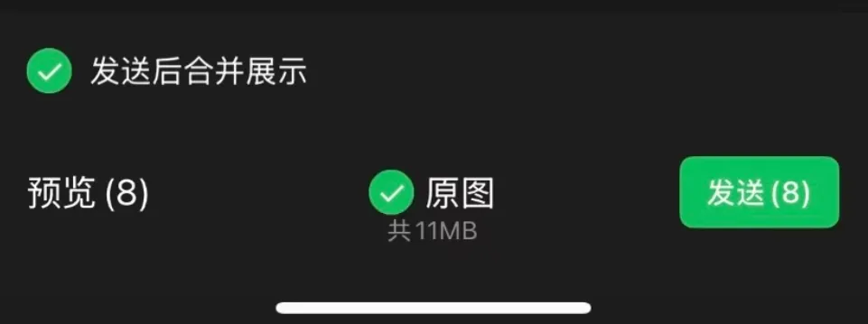 回来讲聊天里的小功能,这个版本把图片折叠给加了进来,发图的时候选择三张以上,勾一下合并,发出去就是一条折叠形态的消息。