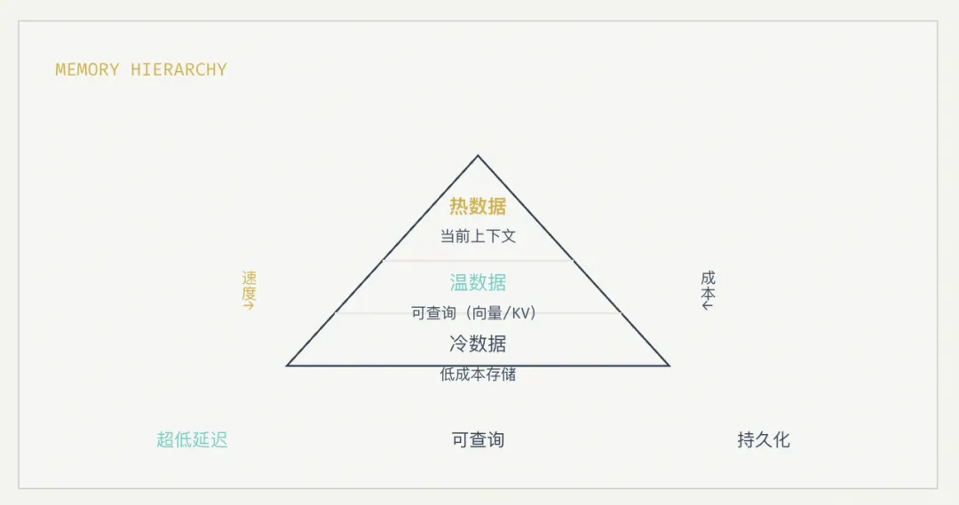 Agent memory天然分层:热数据(当前上下文) → 冷数据(历史) → 长期存储