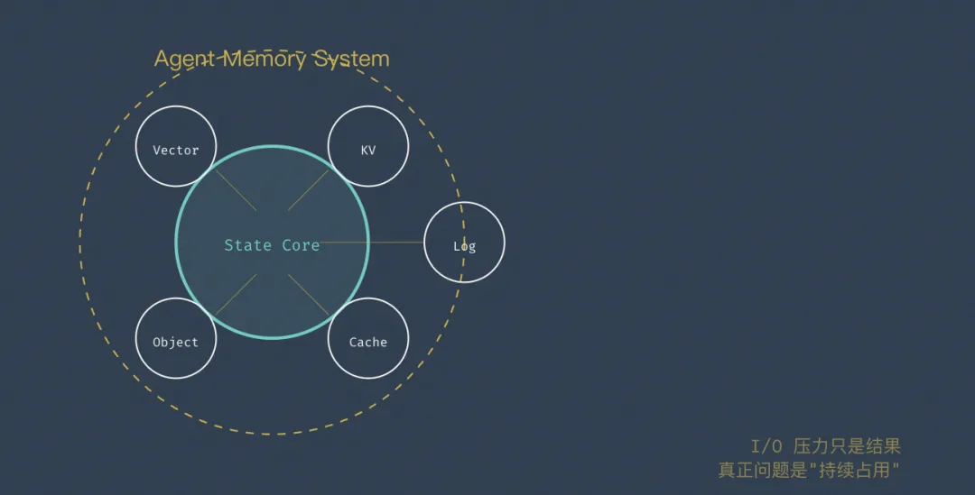 • 数据库只是 Agent Memory System 其中一层 • 瓶颈从“查询性能”转移到“状态管理能力” ◦ 生命周期管理 ◦ 状态一致性 ◦ 内存/存储分层 • I/O压力只是结果,真正问题是“持续占用”