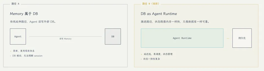 结论:“DB as Agent Runtime”是更合理的收敛,核心原因只有一个:Agent的状态既要“像内存一样快”,又要“像数据库一样可靠”,这两个约束不能拆开。