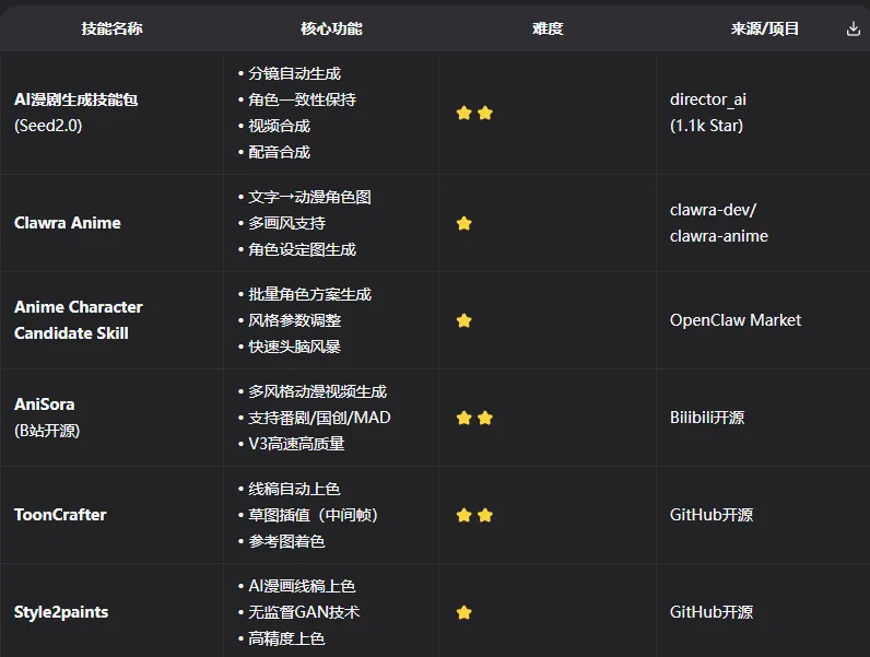 在你记事起,你就非常喜欢看动画片(小孩子都喜欢看动画片),但是你感觉动漫的更新太慢,于是你缠着做程序员的老爸帮你安装了OpenClaw,并且还安装了下面关于动漫创作的skill,决定自己动手创作动漫!后来,在你6岁的时候你制作的动漫不但你喜欢看,你爸妈也喜欢看,上传到网上得到广大网友的一致好评!