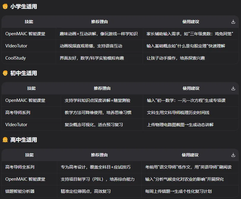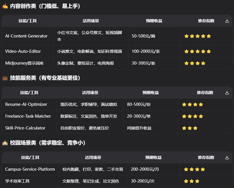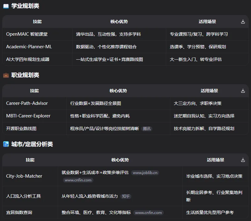 很快你开始了美好的大学时光,没有老师管束,没有父母唠叨!你虽然一下子放松了不少,当你脑海里会想起父母真切而又自豪的目光,你的心也收回了不少!于是你开始规划起了大学时光,你安装了这些技能!从课业分析到就职抉择以及未来发展方向以及定居地等方面充分的分析,你按部就班的充实并且让自己越来越强大!但是你考虑到父母劳碌的背影,决定帮父母减轻一下负担,于是你决定利用课余时间去赚取一些外快,你安装了下面的这些技能!你做自媒体,校园跑腿,在赏金平台上赚取佣金,去做家教等等实现了锻炼自身的同时也解决了经济压力!于是你之后再也没问父母要过一分钱,总是给父母寄来各地的特产!在高中时,爱情时懵懂的,时羞涩的!在大学里,你喜欢上了一个女生,但是又不敢问女生表白,最笨又不知道怎么开口向女生搭讪,于是你安装了下面的技能!在搭配这些技能学习如何和喜欢的女生聊天沟通以及平时得体的穿搭以及恋爱小诀窍等等你终于追到了你喜欢的女生❤在体会了爱情的甜蜜的同时,你的荷包也承受了较大的压力,于是你在购物时为了极致的性价比,于是你安装了下面这些技能!四年的大学时光如白驹过隙般匆匆而过!终于你毕业了,虽然经过四年的大学洗礼,初入社会的你显得依然很青涩!毕业也就意味着就业,你大学的成绩虽然不错,但是社会的水很深,为了面试不才坑,于是你安装了下面这些技能!你终于如愿进入了理想中的公司,有六险二金,有下午茶,年终奖,生日补贴等福利!你也成为别人眼中的榜样,每一步都能精准命中!虽然你满怀期待,但是在工作中总能遇到一些问题,比如每天处理大量的Excel/pdf/word,或者和同事之间的人际关系等等以及社会上的热点(避免一起聊天时显得尴尬不合群),于是你安装了下面的这些技能!为了搞好和同事以及领导的关系,你还安装了下面这些技能!你的工作业绩稳步上升,得到了同事和领导的一致好评,于是你成为了最年轻的部门经理!而你的家庭也很和谐,你的妻子也是你的初恋,就是让你心动的大学同学,你们在一起生下了一对可爱的龙凤胎!你在工作时总感觉缺少一些什么,工作一眼就望到头了,感觉有些平庸,于是你跟妻子商议想要创业的想法,在大学时期就陪你一起的妻子总会支持你,你做什么她都会无条件支持你,于是你在犹豫再三之后决定提出辞职!在你辞职的时候,领导无比惋惜,并表示公司的大门永远为你打开!于是你终于下定决心创业,在你决定创业的想法萌生之时,你就安装了下面这些技能!虽然过程磕磕绊绊,但是在你妻子和儿女的陪伴下,你们度过了最艰难的时期,成功获得资本的认可,拿到了融资,你也走向了成功之路!老年时期就不写了,估计看这篇文章的没有老年人吧?如果有,请在评论区留言,让我致歉!最近有朋友留言说Github上面的项目不知道怎么安装,让我出详细教程,如果这类情况多的话请在评论区留言,如果超过50人,我重新写一篇文章,专门写安装Github项目的"万能公式"!