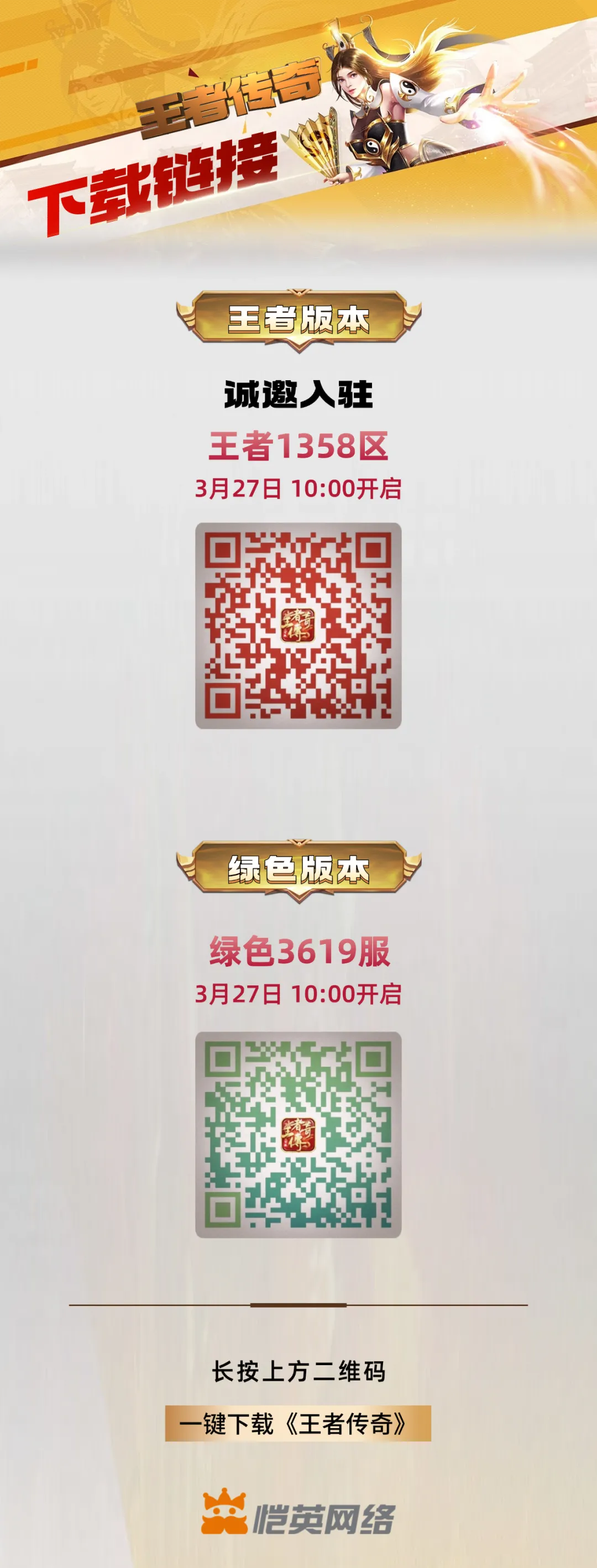 【下载链接】王者版本 1358区丨绿色版本 3619区 3月27日上午10时开启!