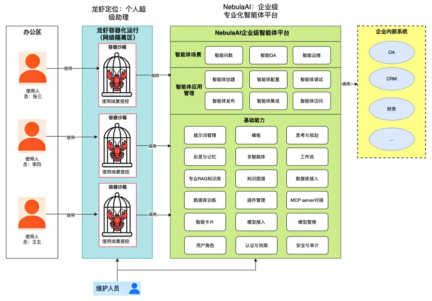 龙虾擅长“个性化、轻量、快速响应”,NebulaAI则专注“企业级、专业、安全、可控”。二者结合,就像个人助理与企业中台的完美协同,让AI真正落地业务,而非停留在实验室。