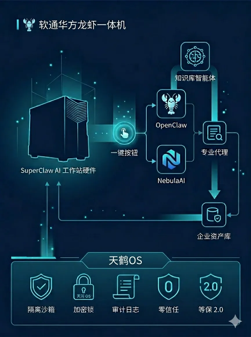 在前一篇《软通华方 “算”融龙虾》中,我们分享了如何用超炫1700/3700一体机把OpenClaw(龙虾助手)从“个人玩具”变成企业生产力引擎。公众号反响热烈,许多读者在后台留言:“龙虾太强了,但企业真敢直接放手用吗?”“安全和专业场景怎么办?”