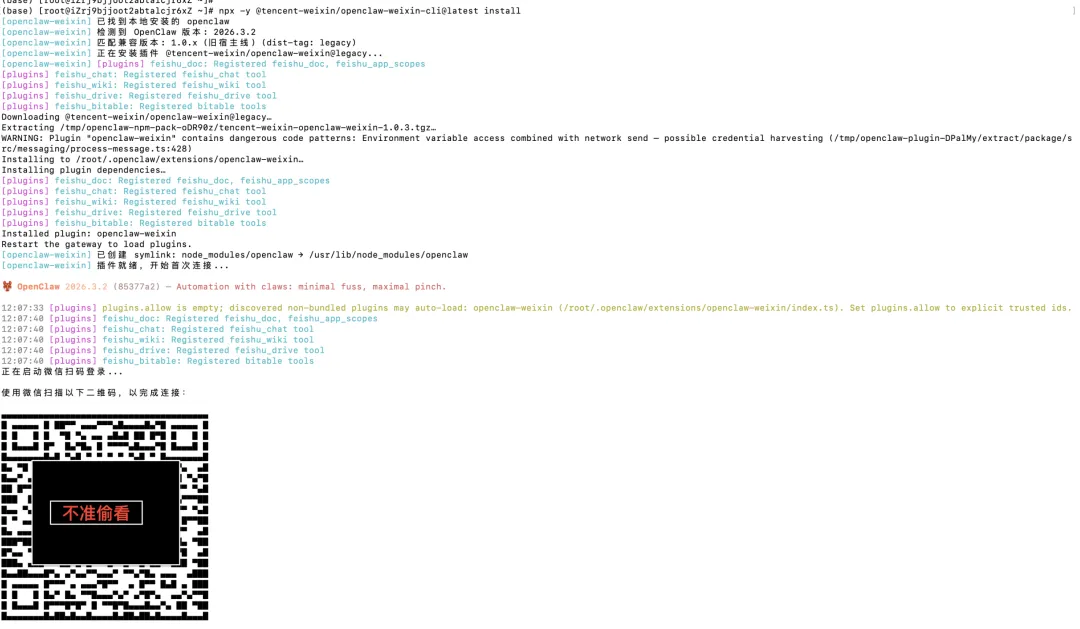 openclaw plugins install "@tencent-weixin/openclaw-weixin"• 启用插件