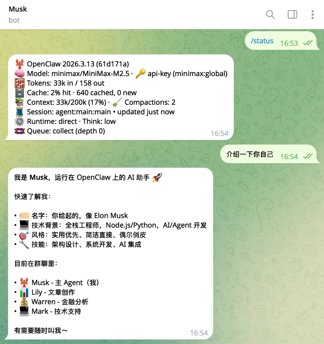 本周正式开启了 AI 全栈工程师的新征程。这段时间深度沉浸在 OpenClaw 的生态构建中,从多平台(飞书、微信、Telegram)的工程化落地,到 Token 优化方案的设计,再到 Skills 配置与多 Agent 协同的实战演练。