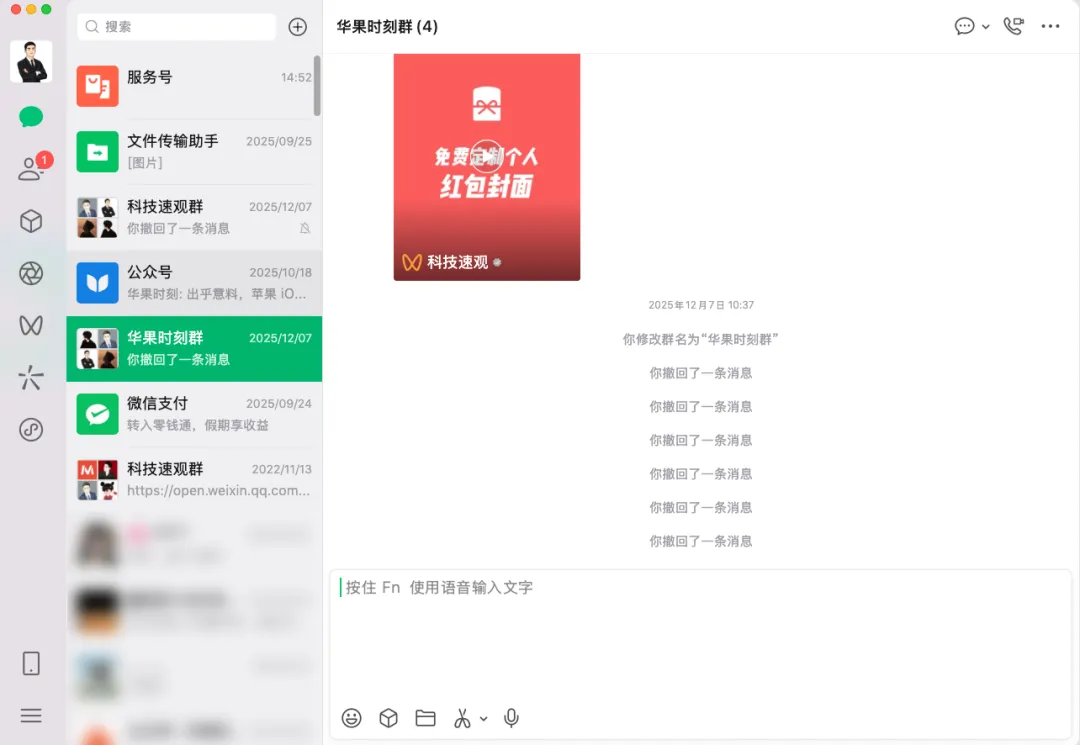 手机端和电脑端微信最新版,请在华果时刻公众号后台发送「微信」直接更新。