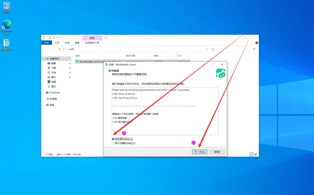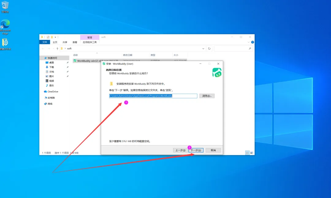 下载WorkBuddy安装包完毕后,双击点击进行安装。