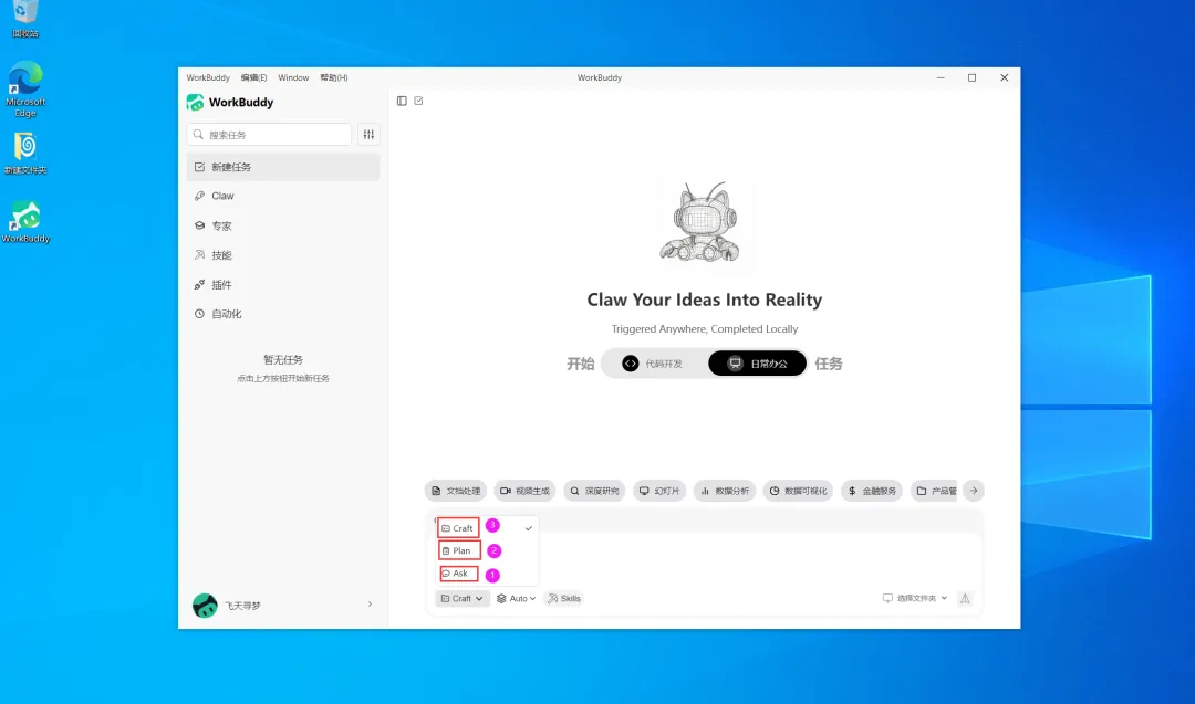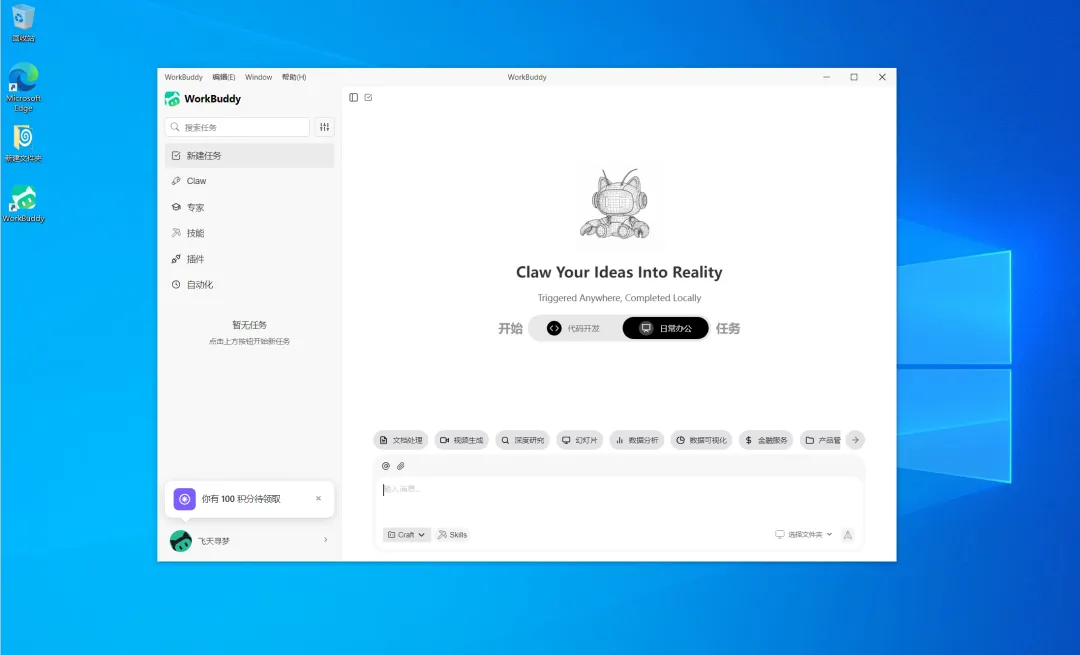 账号登录后,WorkBuddy的界面如下所示: