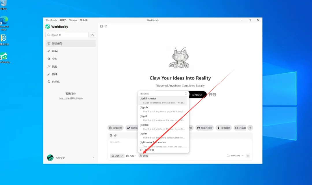 WorkBuddy 目前内置了 20 余种实用技能,涵盖文档处理、数据报表、海报设计、文件整理等日常高频使用场景,同时支持导入 OpenClaw 社区的各类扩展技能。