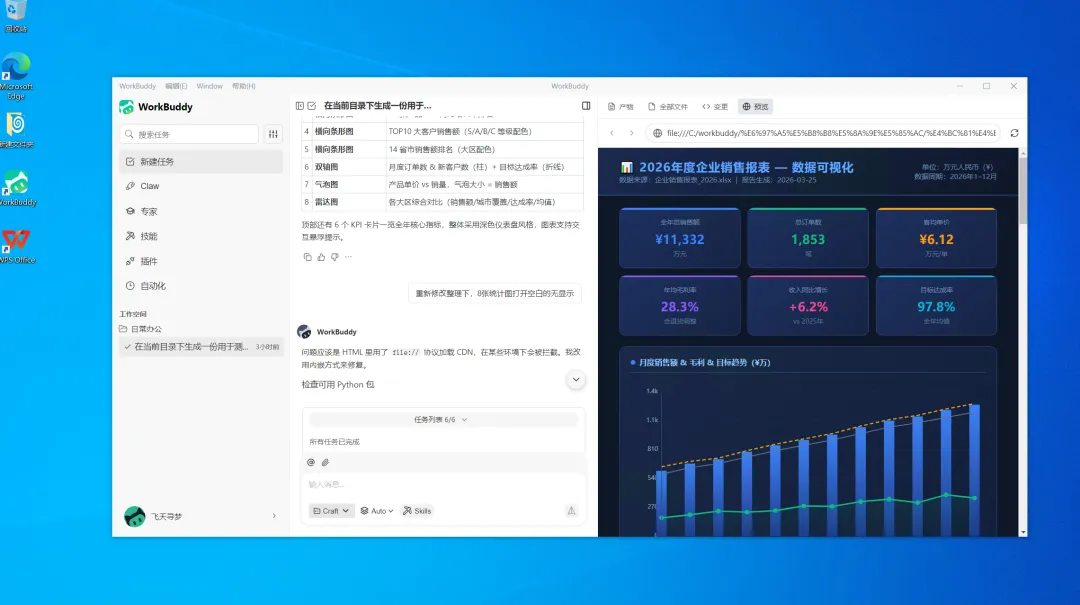 我们再让WorkBuddy根据生成的表格数据,进行绘制统计图,进行数据可视化。