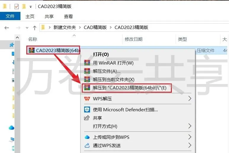 1.鼠标右击→压缩包,选择→解压到 CAD2023(64bit)精简版