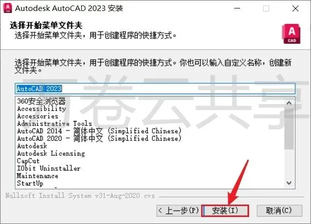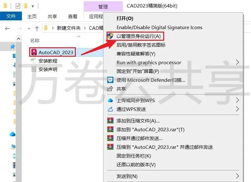2.鼠标右击→AutoCAD2023,选择→以管理员身份运行