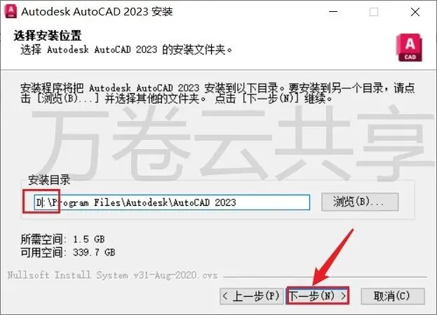 5.修改路径地址中的首字符C可更改安装位置(如:将C改为D软件将安装在D盘),点击→下一步