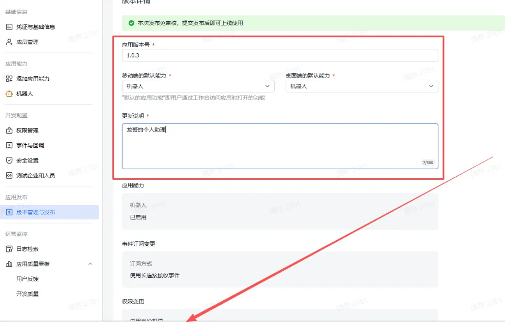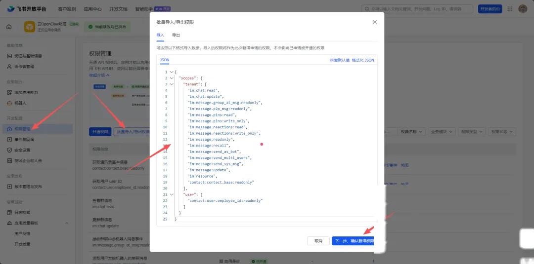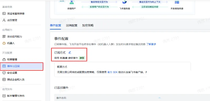 配置完权限后,还得设置回调,不然消息发出去收不到回复。
