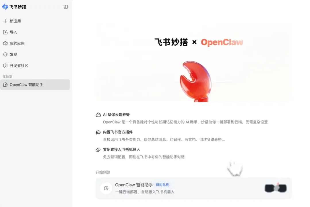 一键部署,秒级完成。官方链接:【飞书妙搭】全网最简单的OpenClaw真一键部署来了!|限时免费,含高级玩法