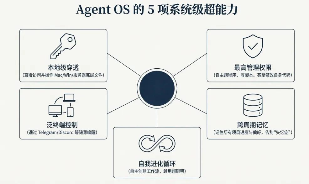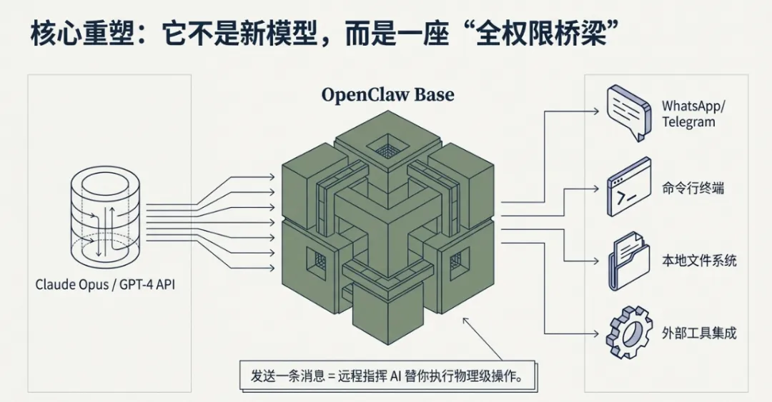 OpenClaw 能够走红,是因为它赋予了 AI 真正的“执行力”。以下是它的五项核心能力,以及它们在现实中创造的奇迹:本地运行(Local Execution)与文件访问:它运行在你自己的电脑上,能直接读取文件。有人将其连接到Ray-Ban Meta 智能眼镜,拍下收据,AI 就能自动读取并存入本地账本。跨平台远程控制:通过 Telegram 或 WhatsApp,你在地铁上发条消息,家里的 AI 就能帮你搞定那些繁琐的公司注册程序(甚至是那些卡了你大半年的手续)。完整的系统权限:它拥有操作终端(Terminal)的权限,可以自行安装软件、编写脚本,甚至通过修改自己的代码来实现功能进化。持久化记忆(Persistent Memory):它能记住你的偏好和项目进度。相比于普通大模型,它更像是一个“老部下”,不需要你反复交代背景。自我进化能力(Skills):它可以创建可重用的工作流。此外,对于极客用户,它支持运行Llama 或通义千问(Qwen)等本地免费模型,帮你省下大笔 API 费用。
