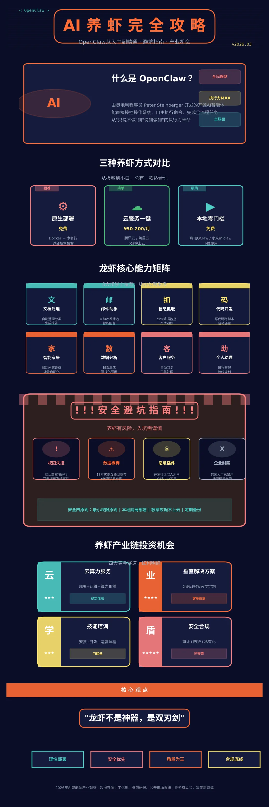 :虽然 OpenClaw 降低了部署门槛,但调用大模型 API 的响应速度可能不如专业交易系统,需注意成本控制和效率优化5。 - 安全风险
