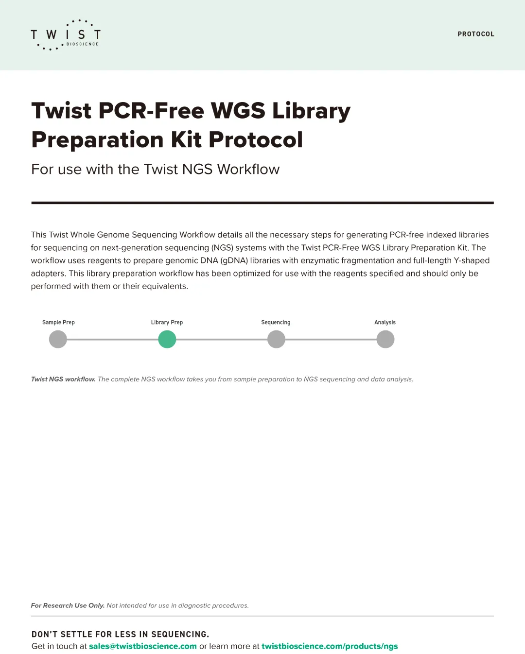 点击此处下载Twist PCR-Free 全基因组测序文库制备操作手册简化靶向富集工作流程