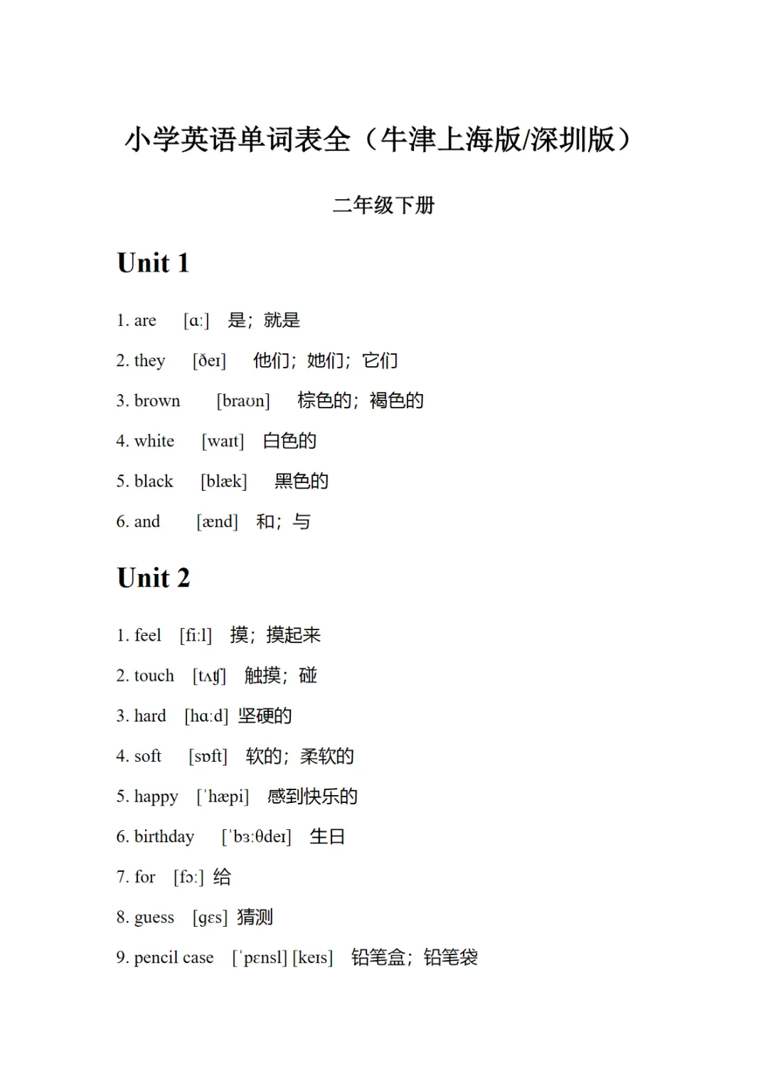 【免费下载】二年级下册【单词表】(牛津上海版、深圳版),WORD电子版,可编辑,可打印点击上方蓝字关注更多优质资源资源介绍二年级下册【单词表】(牛津上海版、深圳版)https://pan.baidu.com/s/1iC4KSNr4Pwix6GMfzy9rkA?pwd=8888复制链接到浏览器打开,或者微信发给自己即可点开点击文末”阅读原文“,获取全套教辅资料资源太多,仅展示部分内容点击图片,查看大图▼▼▼▼版权声明:本资源为免费分享,仅供学习和教学使用版权归原作者所有,如有侵权请联系删除点击“阅读原文”下载完整PDF电子版