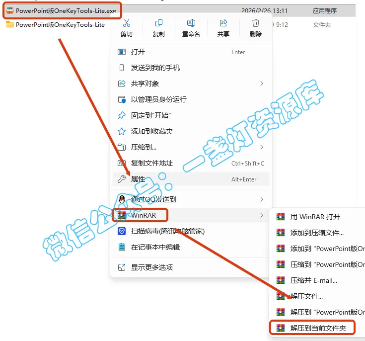 2.打开刚刚解压的文件夹,鼠标右键点击【OneKeyTools Lite for PowerPoint 安装包.exe】选择【以管理员身份运行】