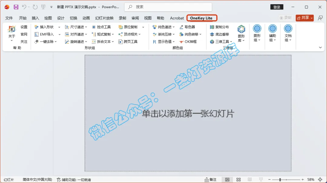 7.打开表格PowerPoint(PPT)软件,点击【OneKey Lite】,即可查看使用功能