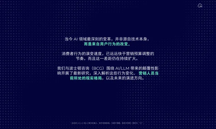 我们与波士顿咨询(BCG)围绕AI/LLM带来的颠覆性影响开展了最新研究,深入解析这些行为变化、营销人员当前所处的现实格局,以及未来的演进方向。