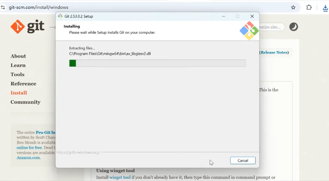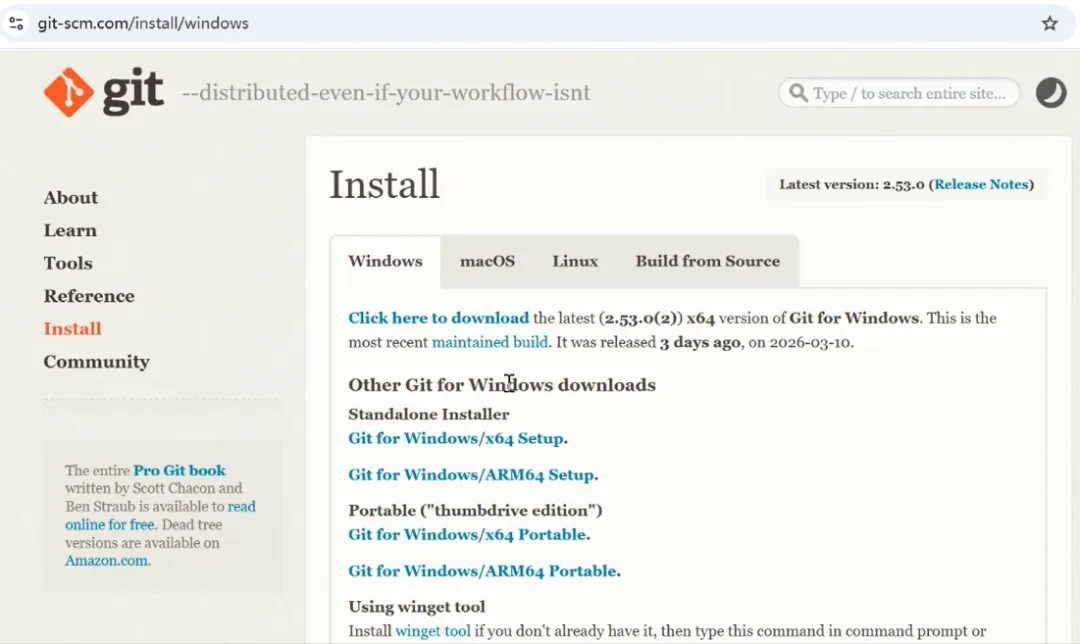 从https://git-scm.com/install/windows 下载windows git安装包