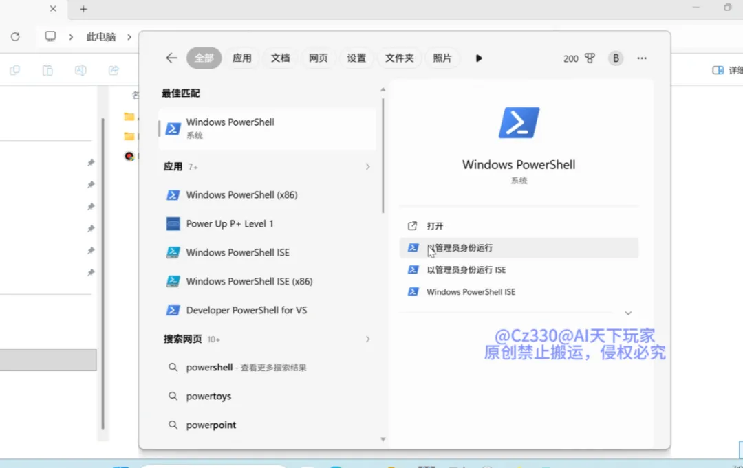 4 用管理员权限运行powershell