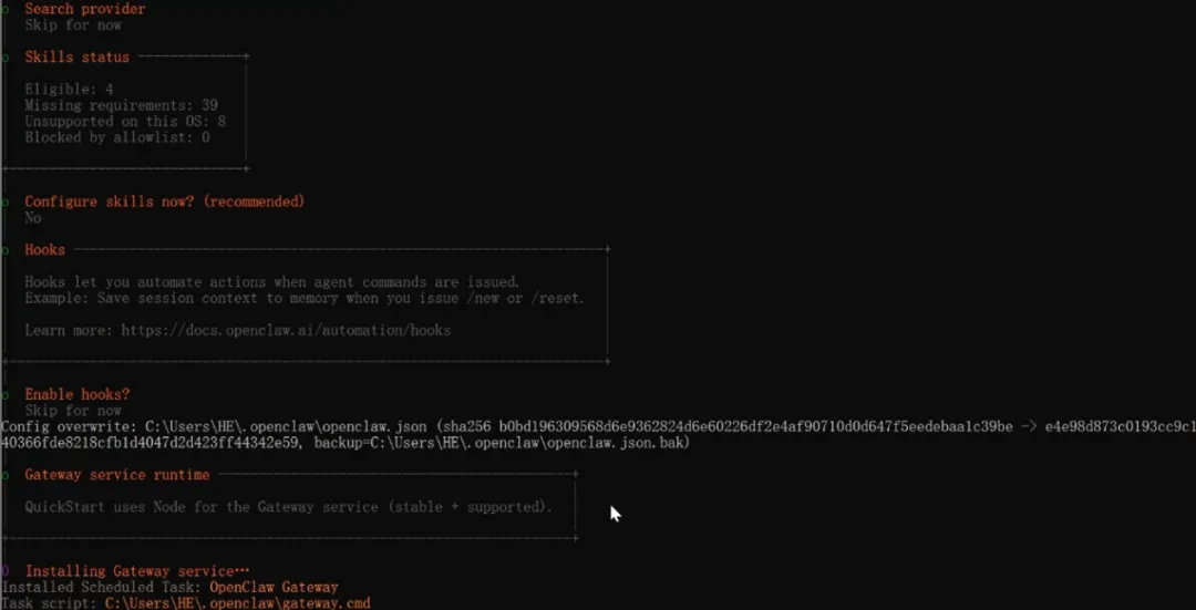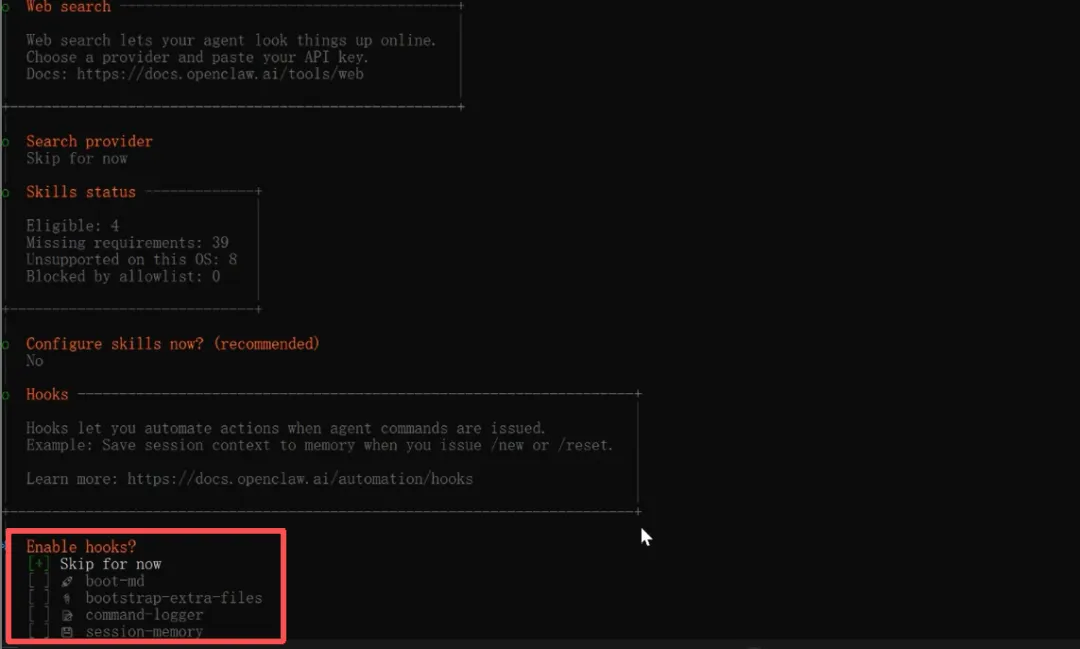 跳过skills安装,后续再根据需求安装。