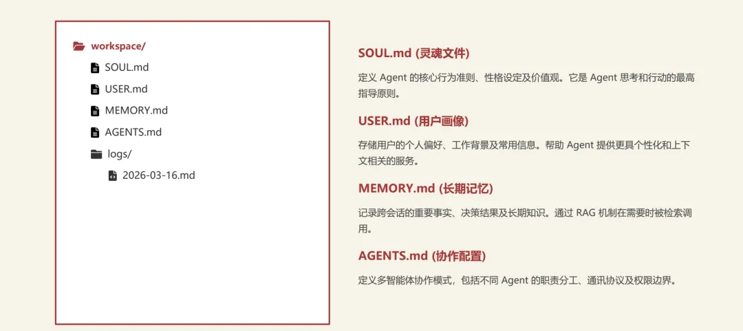 我觉得这份的内容,如果没有技术背景的朋友可以跳过,但是里面有介绍到OpenClaw的几个有用的文件,需要记录下来,以便后面部署小龙虾的时候可以使用到。