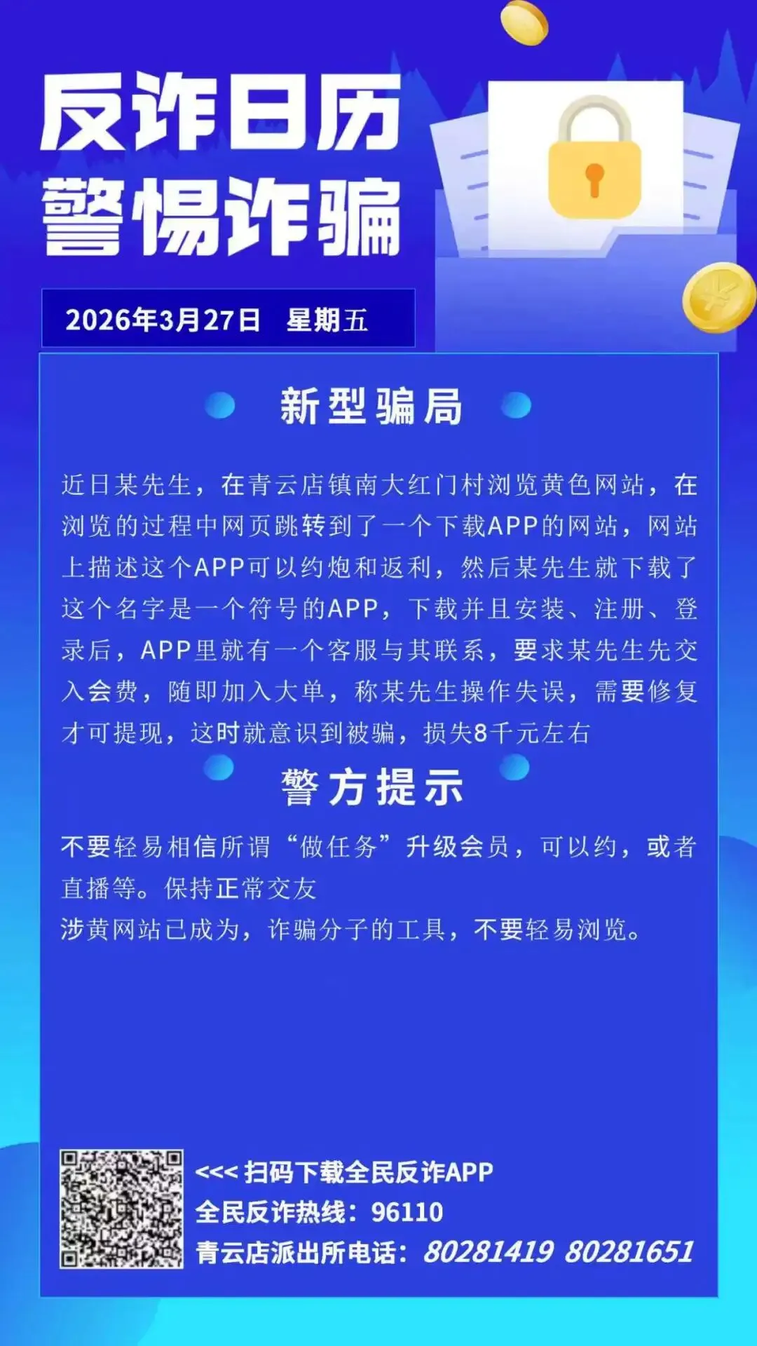 反诈宣传 | 切勿下载涉黄软件,南大红门一村民被骗8000元!来源/ 青云店派出所往期回顾强农兴镇 | 青云店镇蔬菜产业跑出“加速度” 实现面积、产量、效益“三增长”学习教育 | 关于树立和践行正确政绩观,这篇文章要收藏!警示教育 | 北京连发两起火灾!清明寄哀思,请务必注意→