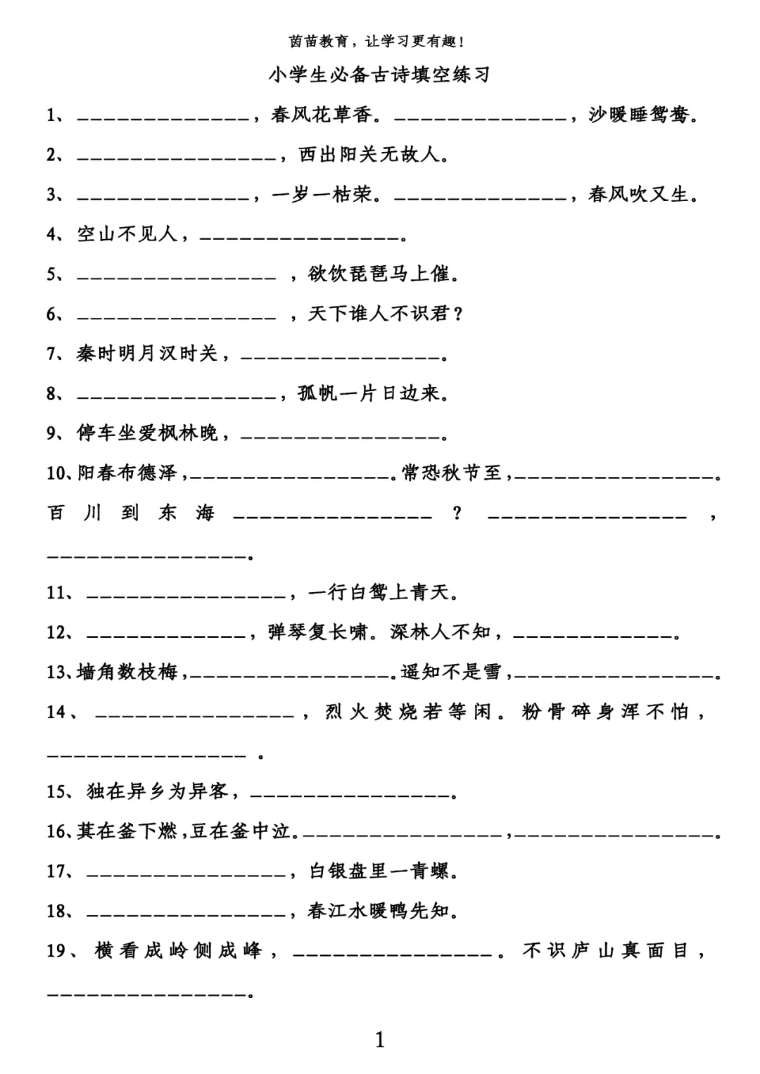 10、阳春布德泽,万物生光辉。常恐秋节至,焜黄华叶衰。百川到东海,何时复西归?少壮不努力,老大徒伤悲。